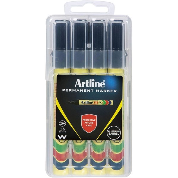 ARTLINE 70 PERMANENT MARKER BULLET 1.5MM BLACK HARD CASE PACK 4