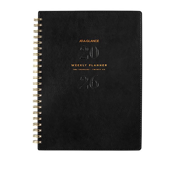 The At-A-Glance signature planner range offers unique gender-neutral cover materials paired with antique bronze twin wire binding to give a sophisticated look - Featuring stylish embossed and foil-printed covers with stitched edges to add an elegant look