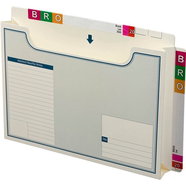 - Printed panels on the cover enable notes and related file information to be entered directly onto the file