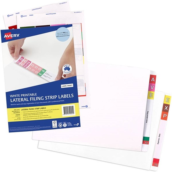 - Includes 500 Foolscap White Lateral Files (7005839), 800 Avery Lateral Filing Labels (7005388)