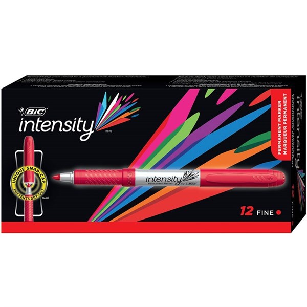 BIC INTENSITY PERMANENT MARKER BULLET FINE RED BOX 12