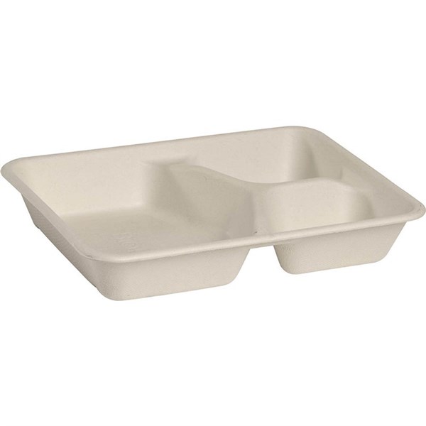 BIOPAK BIOCANE TAKEAWAY BASE 3 COMPARTMENT 240 X 180 X 40MM NATURAL PACK 125