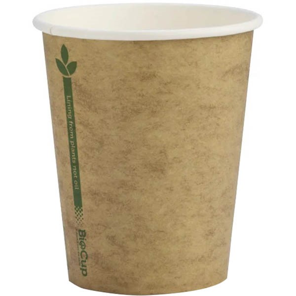 Paper BioCups are made from premium paperboard with a bioplastic lining made from plants, not oil - This 8oz Kraft Green Line paper cup is printed kraft-look