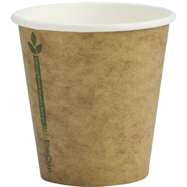 Paper BioCups are sustainably sourced from managed plantations with a bioplastic lining made from plants, not oil - This cup is printed kraft-look