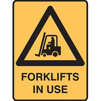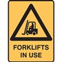 BRADY WARNING SIGN FORKLIFTS IN USE 450 X 300MM POLYPROPYLENE