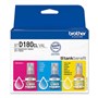 The Brother BTD180 Ink Cartridge Value Pack Assorted provides a complete set of ink bottles for vibrant and reliable printing - It includes Cyan, Magenta, Yellow, and Black bottles, delivering high-quality results for both documents and images