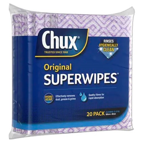 Chux Original Superwipes cleaning Wipes have a high absorbency - Ideal for all cleaning situations from food preparation, healthcare, and workshops to general cleaning