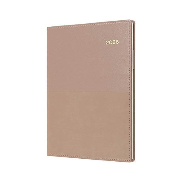 The Collins Vanessa is ideal for those on the move with its double wiro binding and heavily grained metallic and matt PU cover - Printed on a subtle cream paper, each dated page layout features a six-month to opening calendar, week numbers, Julian days, as well as both national and international public holidays