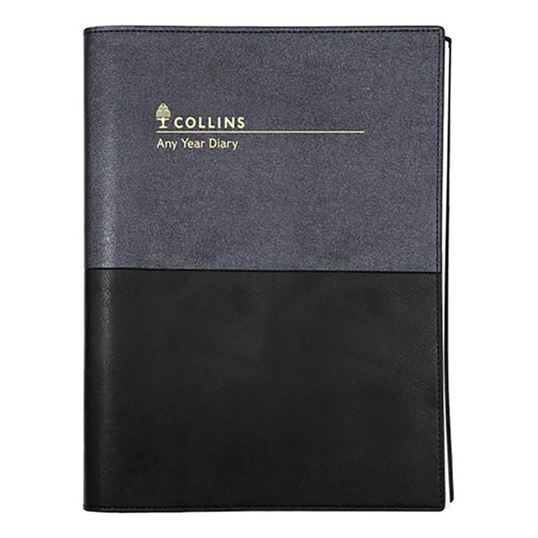 COLLINS VANESSA A5D.2U99 ANY YEAR DIARY A5 DAY TO PAGE 2-TONE BLACK
