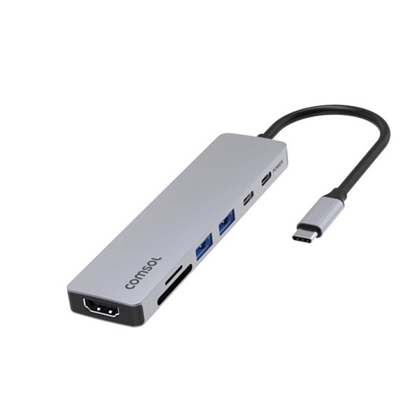 The Comsol USB-C to 4K HDMI Dock with SD Card Reader Grey CM14HSD is designed to expand connectivity for USB-C enabled laptops, tablets, and smartphones by connecting multiple peripherals through a single port - It supports 4K HDMI video output for high-resolution displays, along with USB ports for accessories and SD/microSD card slots for convenient file access