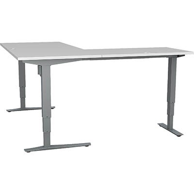CONSET 501-43 ELECTRIC HEIGHT ADJUSTABLE L-SHAPED DESK 1800 X 800MM / 1800 X 600MM WHITE/SILVER