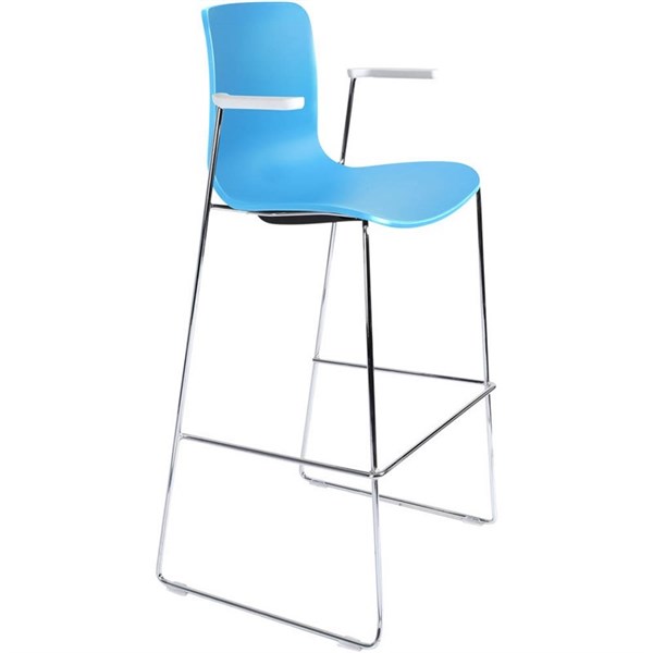 DAL ACTI BAR STOOL SLED BASE HIGH 760MM ARMS WHITE ARM-PADS AND CHROME FRAME OCEAN BLUE POLYPROP SHELL