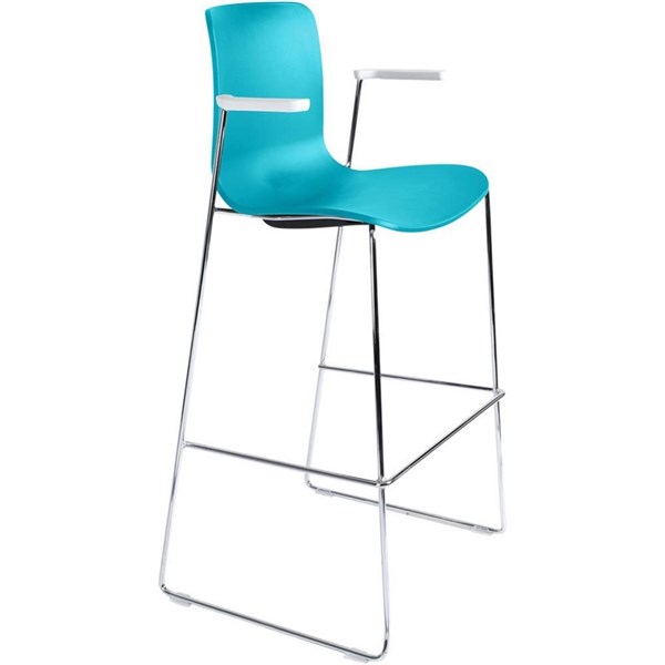 DAL ACTI BAR STOOL SLED BASE HIGH 760MM ARMS WHITE ARM-PADS AND CHROME FRAME TEAL POLYPROP SHELL