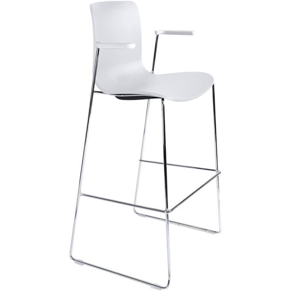 DAL ACTI BAR STOOL SLED BASE HIGH 760MM ARMS WHITE ARM-PADS AND CHROME FRAME WHITE POLYPROP SHELL