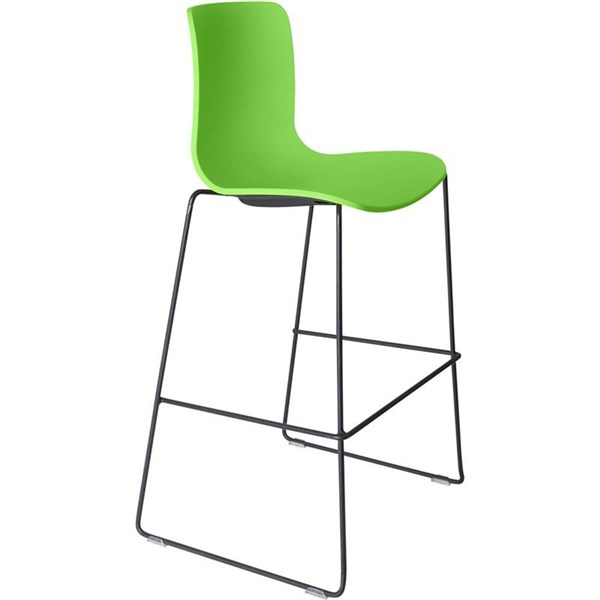DAL ACTI BAR STOOL SLED BASE HIGH 760MM BLACK POWDERCOAT FRAME GREEN POLYPROP SHELL