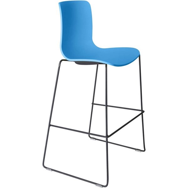 DAL ACTI BAR STOOL SLED BASE HIGH 760MM BLACK POWDERCOAT FRAME OCEAN BLUE POLYPROP SHELL