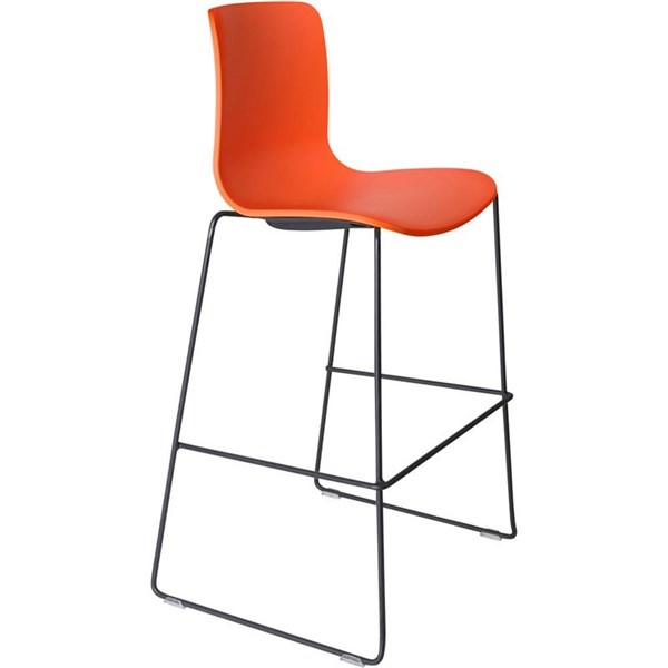 DAL ACTI BAR STOOL SLED BASE HIGH 760MM BLACK POWDERCOAT FRAME ORANGE POLYPROP SHELL