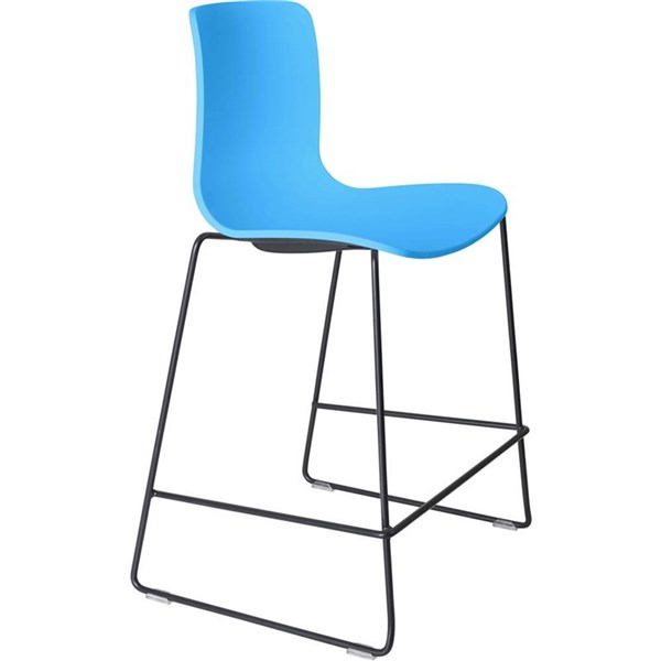 DAL ACTI BAR STOOL SLED BASE LOW 630MM BLACK POWDERCOAT FRAME OCEAN BLUE POLYPROP SHELL