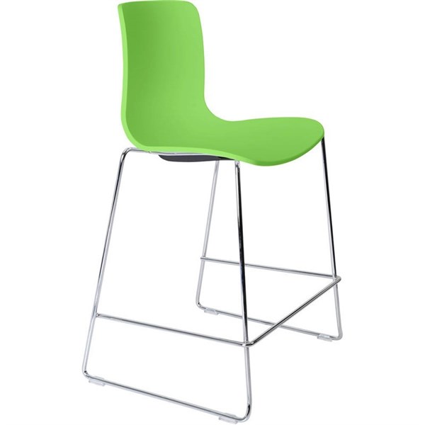 DAL ACTI BAR STOOL SLED BASE LOW 630MM CHROME FRAME GREEN POLYPROP SHELL