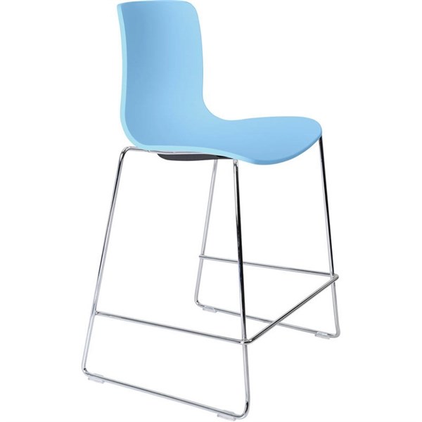 DAL ACTI BAR STOOL SLED BASE LOW 630MM CHROME FRAME PALE BLUE POLYPROP SHELL