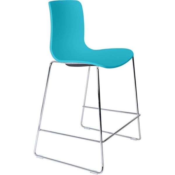 DAL ACTI BAR STOOL SLED BASE LOW 630MM CHROME FRAME TEAL POLYPROP SHELL