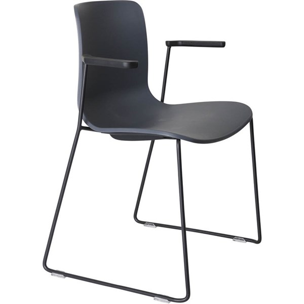 DAL ACTI CHAIR SLED BASE ARMS BLACK ARM-PADS AND BLACK POWDERCOAT FRAME CHARCOAL POLYPROP SHELL