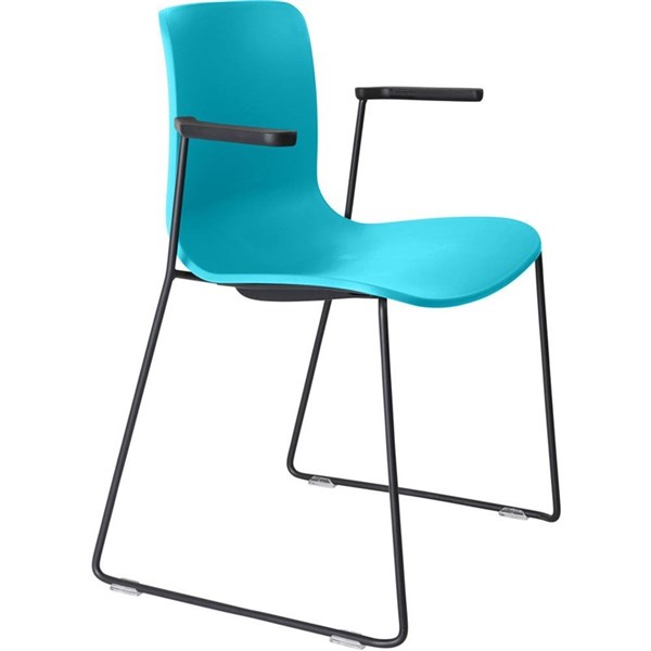 DAL ACTI CHAIR SLED BASE ARMS BLACK ARM-PADS AND BLACK POWDERCOAT FRAME TEAL POLYPROP SHELL