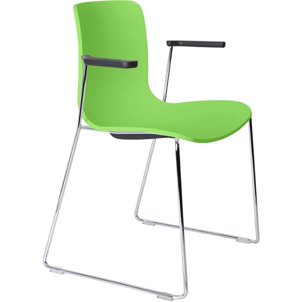 DAL ACTI CHAIR SLED BASE ARMS BLACK ARM-PADS AND CHROME FRAME GREEN POLYPROP SHELL
