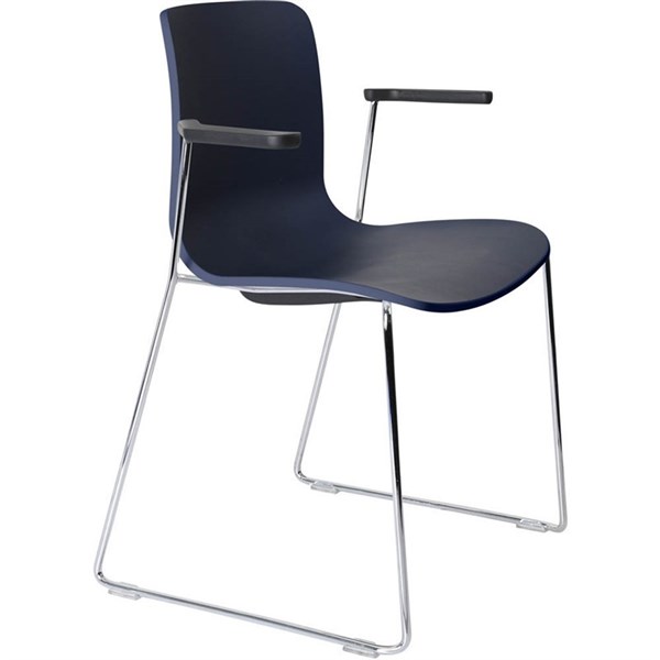 DAL ACTI CHAIR SLED BASE ARMS BLACK ARM-PADS AND CHROME FRAME NAVY BLUE POLYPROP SHELL