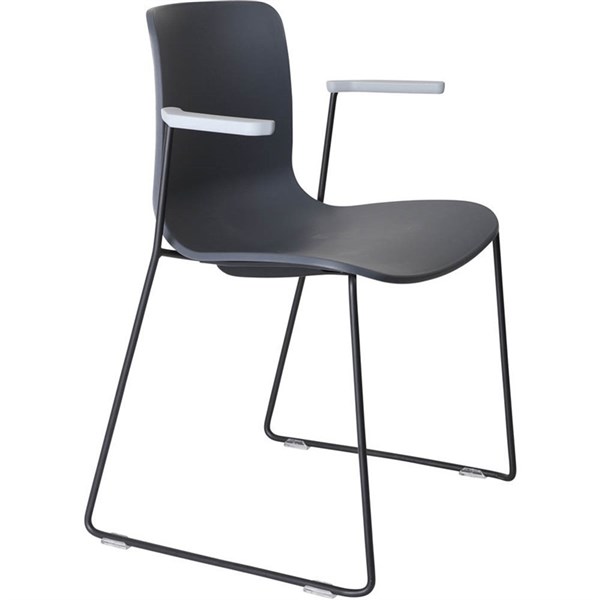 DAL ACTI CHAIR SLED BASE ARMS LIGHT GREY ARM-PADS AND BLACK POWDERCOAT FRAME CHARCOAL POLYPROP SHELL