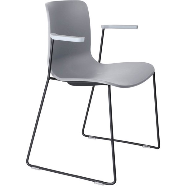 DAL ACTI CHAIR SLED BASE ARMS LIGHT GREY ARM-PADS AND BLACK POWDERCOAT FRAME LIGHT GREY POLYPROP SHELL