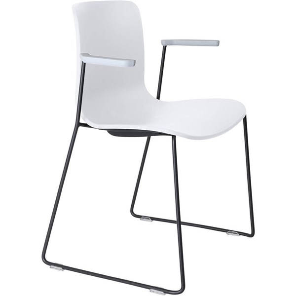 DAL ACTI CHAIR SLED BASE ARMS LIGHT GREY ARM-PADS AND BLACK POWDERCOAT FRAME WHITE POLYPROP SHELL