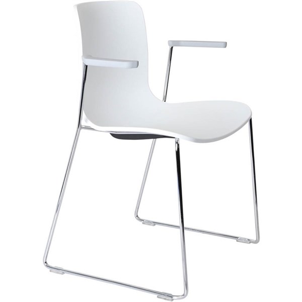DAL ACTI CHAIR SLED BASE ARMS LIGHT GREY ARM-PADS AND CHROME FRAME WHITE POLYPROP SHELL