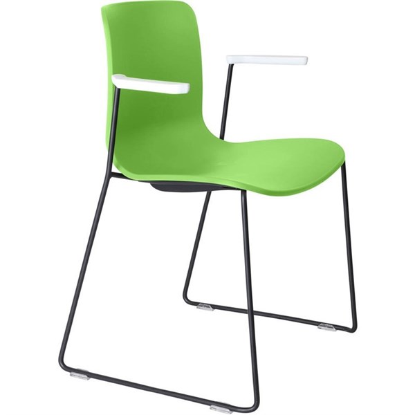 DAL ACTI CHAIR SLED BASE ARMS WHITE ARM-PADS AND BLACK POWDERCOAT FRAME GREEN POLYPROP SHELL