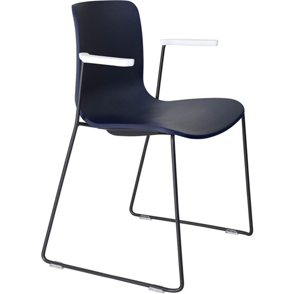 DAL ACTI CHAIR SLED BASE ARMS WHITE ARM-PADS AND BLACK POWDERCOAT FRAME NAVY BLUE POLYPROP SHELL