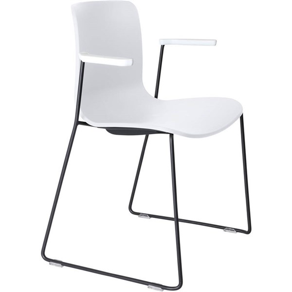 DAL ACTI CHAIR SLED BASE ARMS WHITE ARM-PADS AND BLACK POWDERCOAT FRAME WHITE POLYPROP SHELL