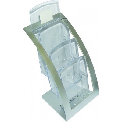 DEFLECTO BROCHURE HOLDER CURVED 3-POCKET 3-TIER DL SILVER/CLEAR