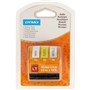 - The Dymo variety starter pack is a three-pack of 12mm x 4m tapes consisting of 1 each of white paper tape, yellow plastic tape and clear plastic tape
