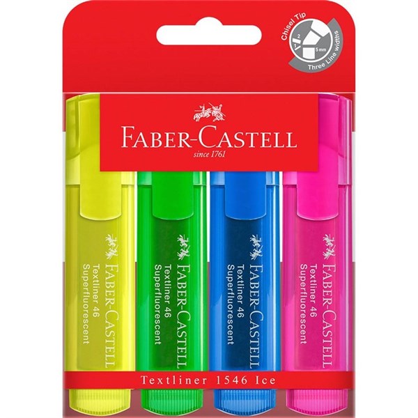FABER-CASTELL TEXTLINER ICE HIGHLIGHTER CHISEL ASSORTED WALLET 4
