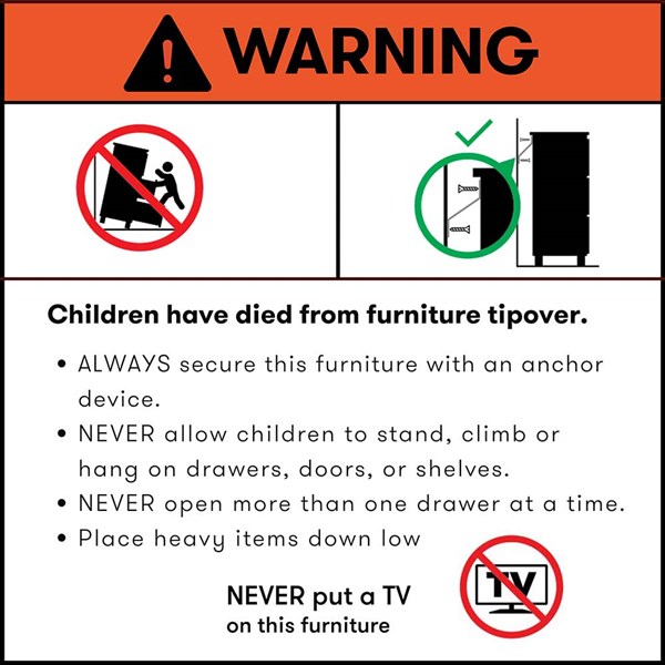 - Disclaimer: Freestanding furniture may tip over if not properly secured. Always follow the manufacturer's safety instructions and ensure items are anchored or stabilized as recommended