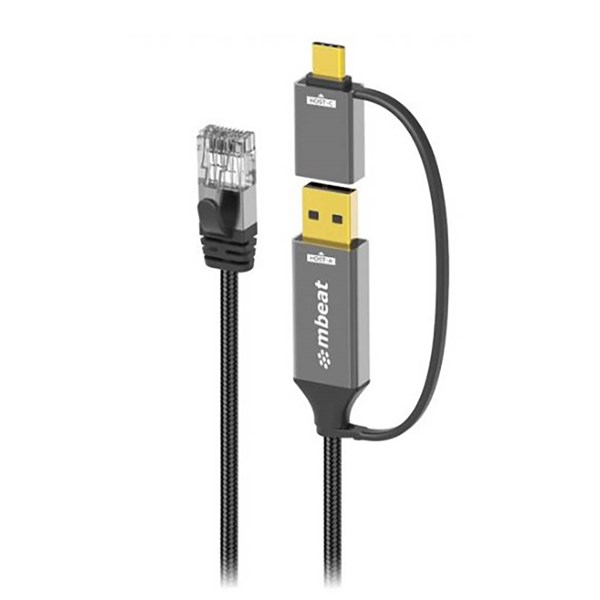 The Mbeat Tough Link 2-in-1 USB-A and USB-C to RJ45 Gigabit Ethernet Cable offers fast 1Gbps wired internet with CAT6 support - Featuring dual USB connectors for wide compatibility, durable nylon-braided construction, gold-plated connectors, and plug-and-play setup