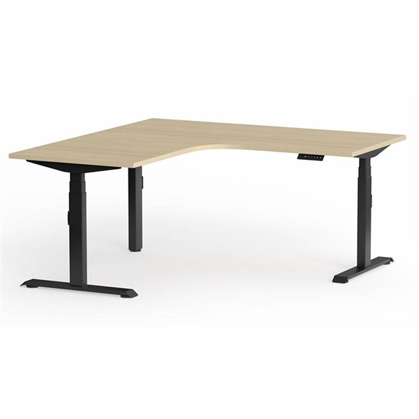 OLG KLASS 3C/2M ELECTRIC 90 DEGREE WORKSTATION WITH LEFT HAND RETURN 1800 X 750MM BLACK FRAME NEW OAK RAVINE