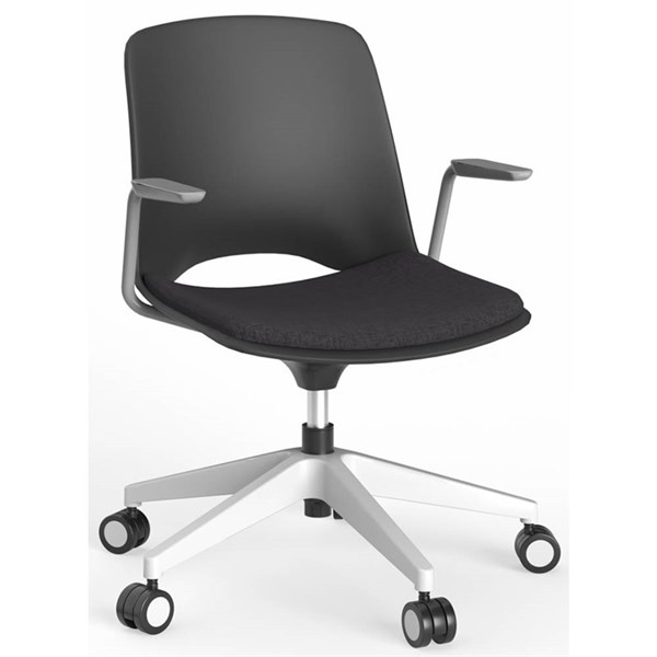OLG VISTA SWIVEL CHAIR WITH ARMS WHITE BASE AND BLACK SEAT