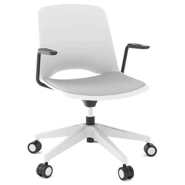 OLG VISTA SWIVEL CHAIR WITH ARMS WHITE BASE AND WHITE SEAT