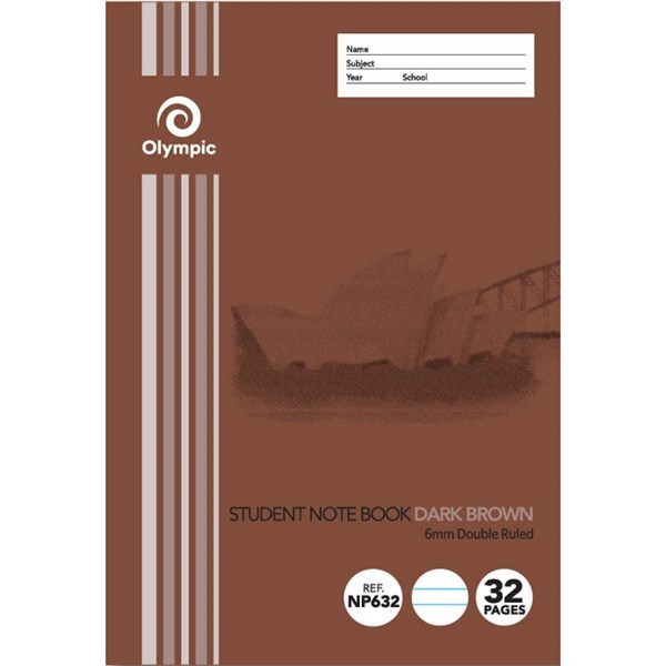 OLYMPIC NP632 EXERCISE BOOK NSW RULING DOUBLE RULED 6MM 55GSM 32 PAGE 250 X 176MM DARK BROWN PACK 20