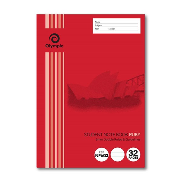 OLYMPIC NSW STUDENT BOOK 6MM DOUBLE RULED 250 X 175MM 32 PAGES RUBY
