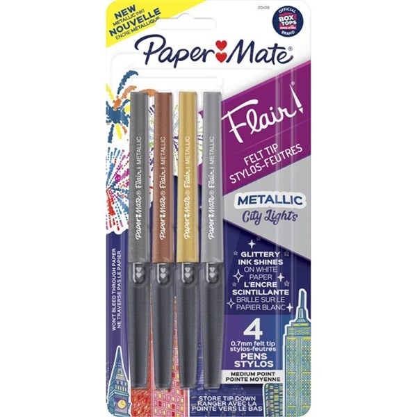 PAPERMATE FLAIR FELT TIP PEN MEDIUM METALLIC CITY LIGHTS 0.7MM PACK 4