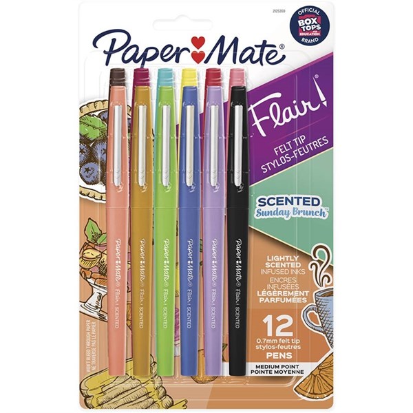 PAPERMATE FLAIR SCENTED FELT TIP PEN MEDIUM SUNDAY BRUNCH 0.7MM ASSORTED PACK 12