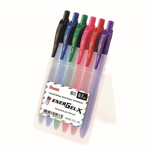 PENTEL BL107 ENERGEL X RETRACTABLE GEL INK PEN 0.7MM ASSORTED PACK 6