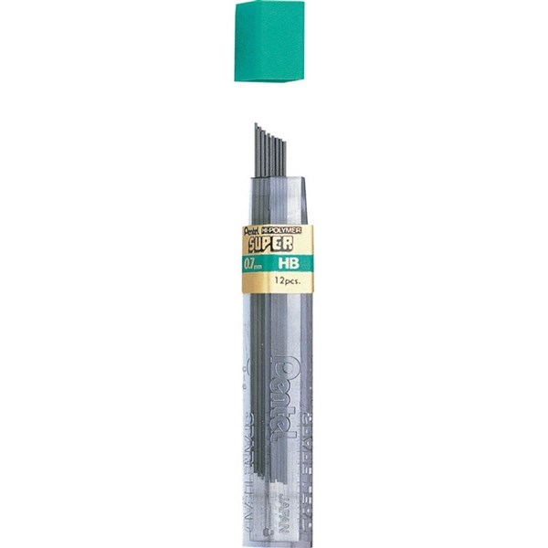 PENTEL HI-POLYMER MECHANICAL PENCIL LEAD REFILLS HB 0.7MM TUBE 12
